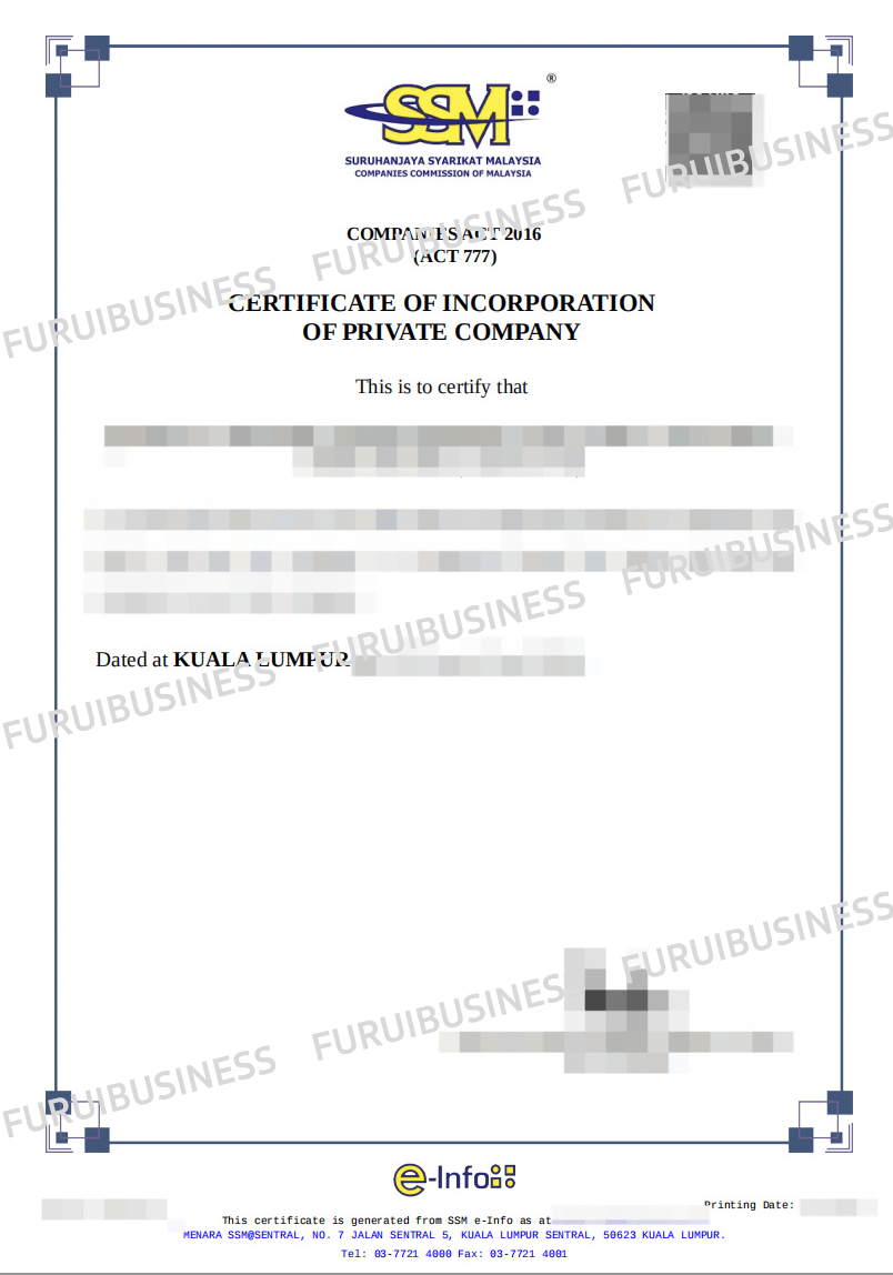 孚锐商务已成功协助客户在马来西亚完成公司注册,以下是案例展示:
